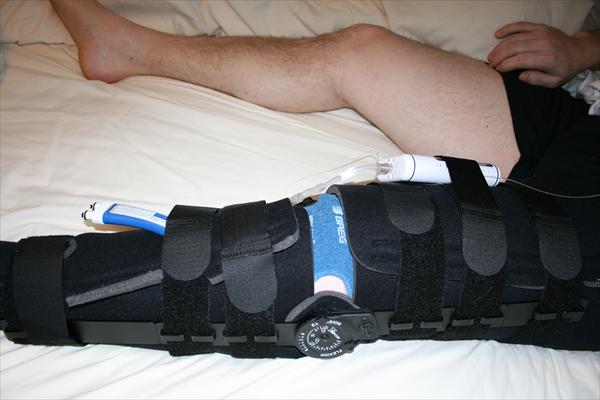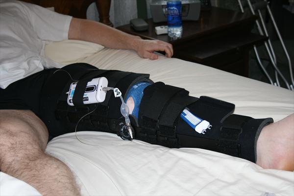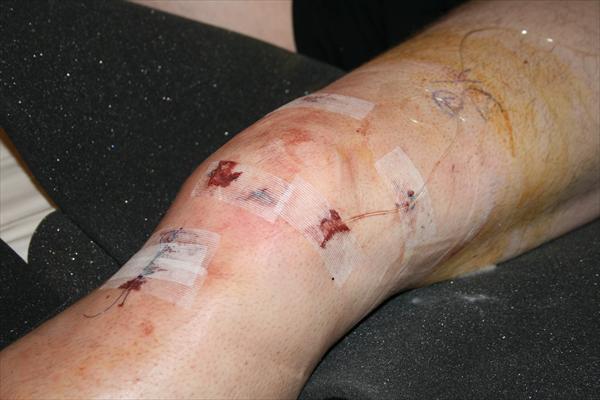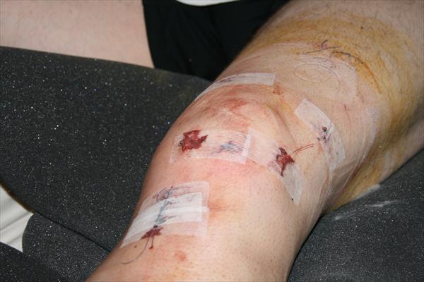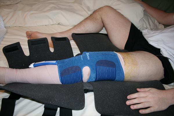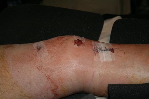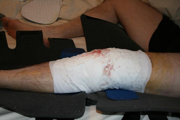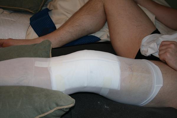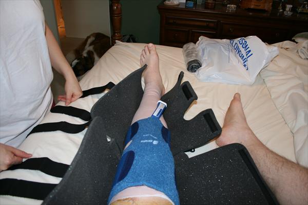 . Sunday, January 25, 2009 - Laura taking off the bandages and re-dressing my knee after my surgery.